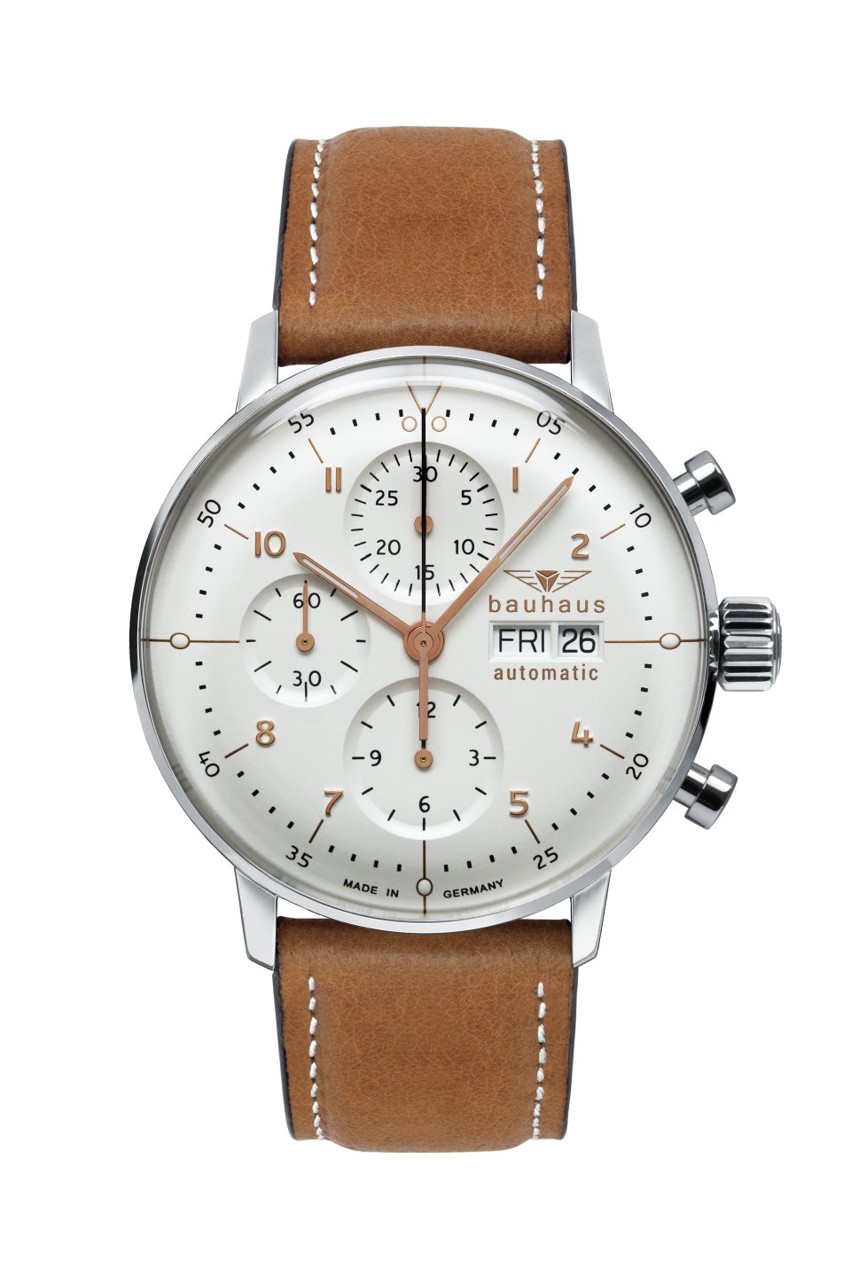 Bauhaus Herrenuhr Automatik Chronograph mit Lederarmband