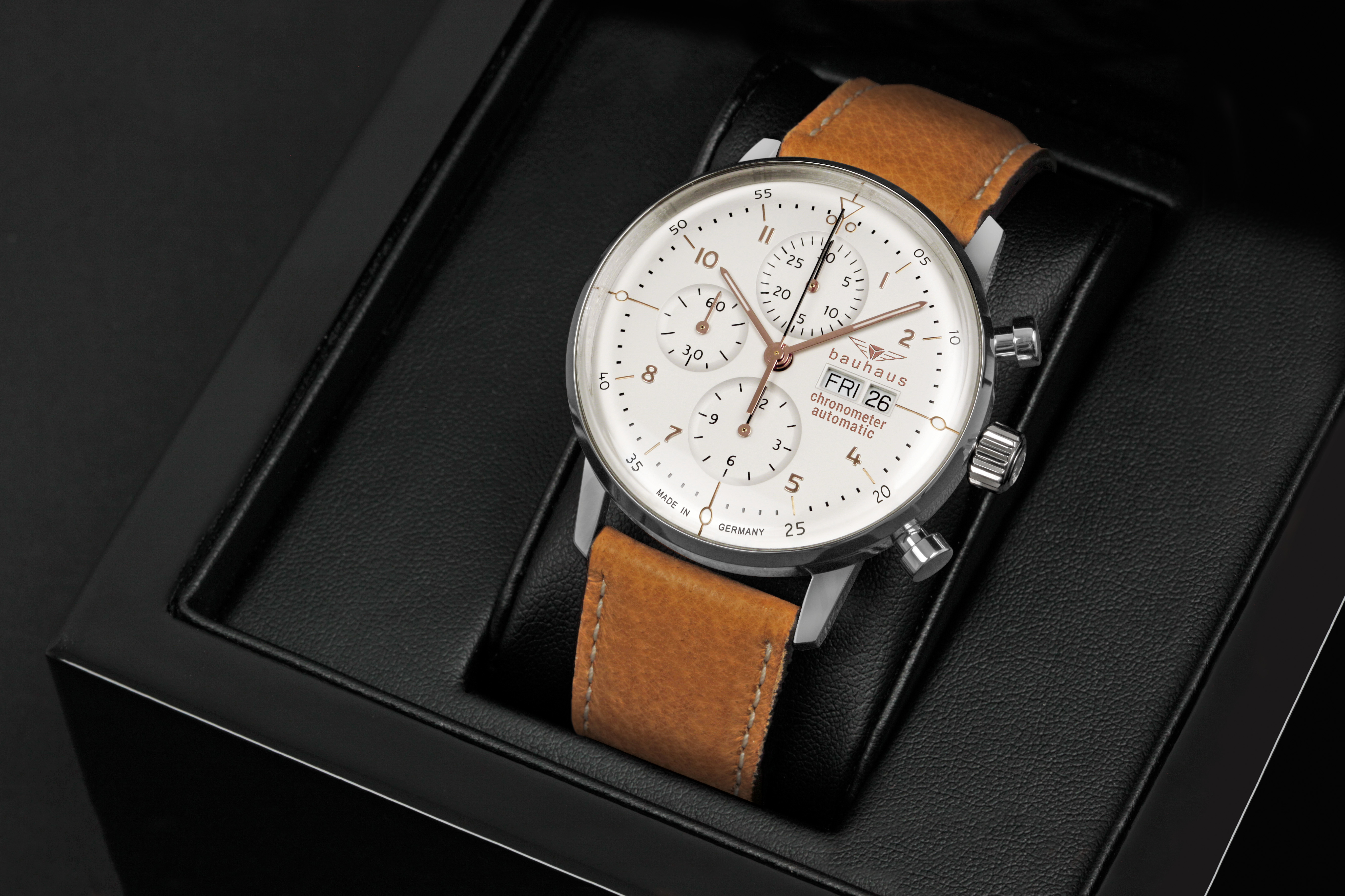 Bauhaus Herrenuhr Automatik Chronometer mit Lederarmband
