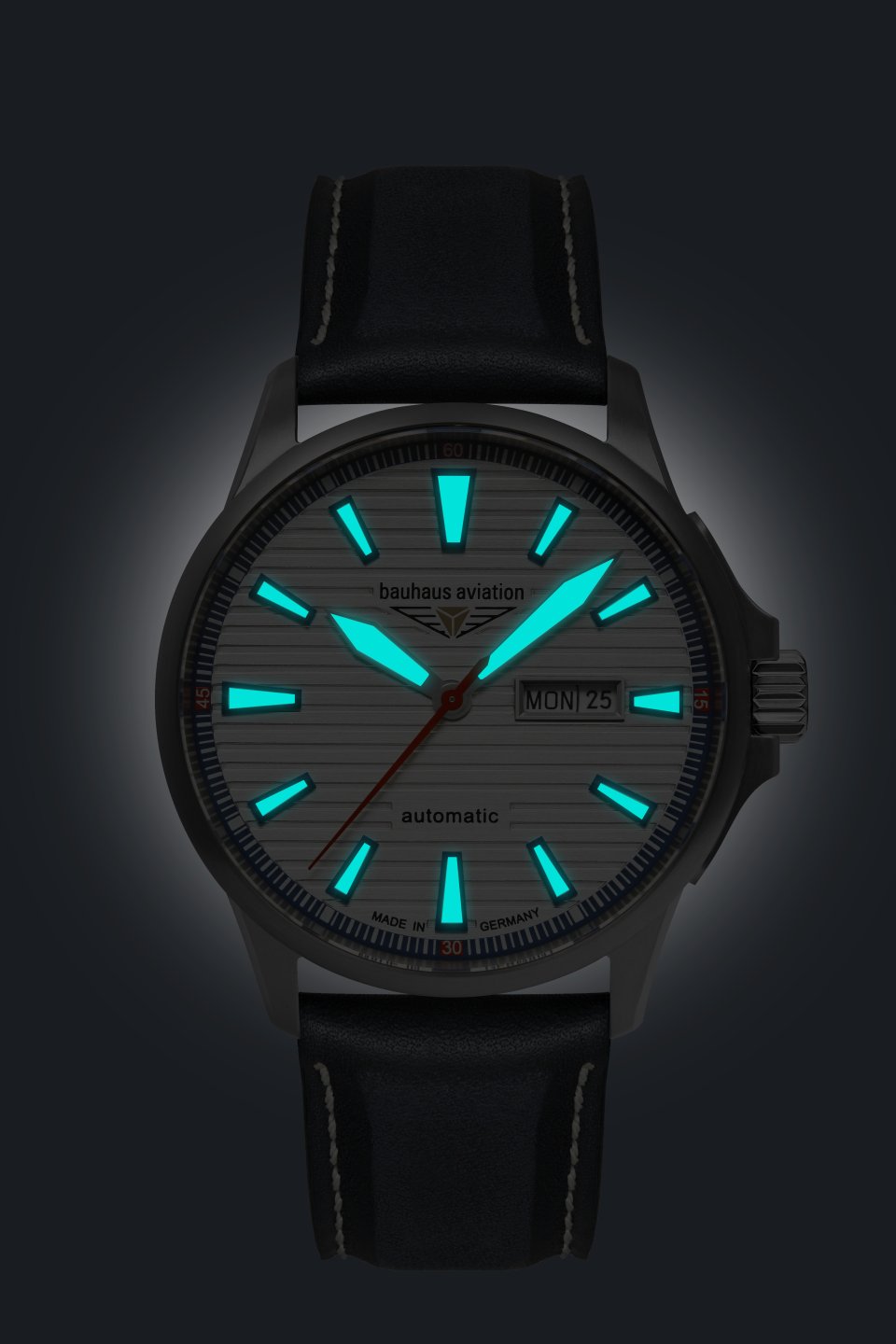bauhaus Aviation Herrenuhr Automatik mit Day Date und Lederarmband