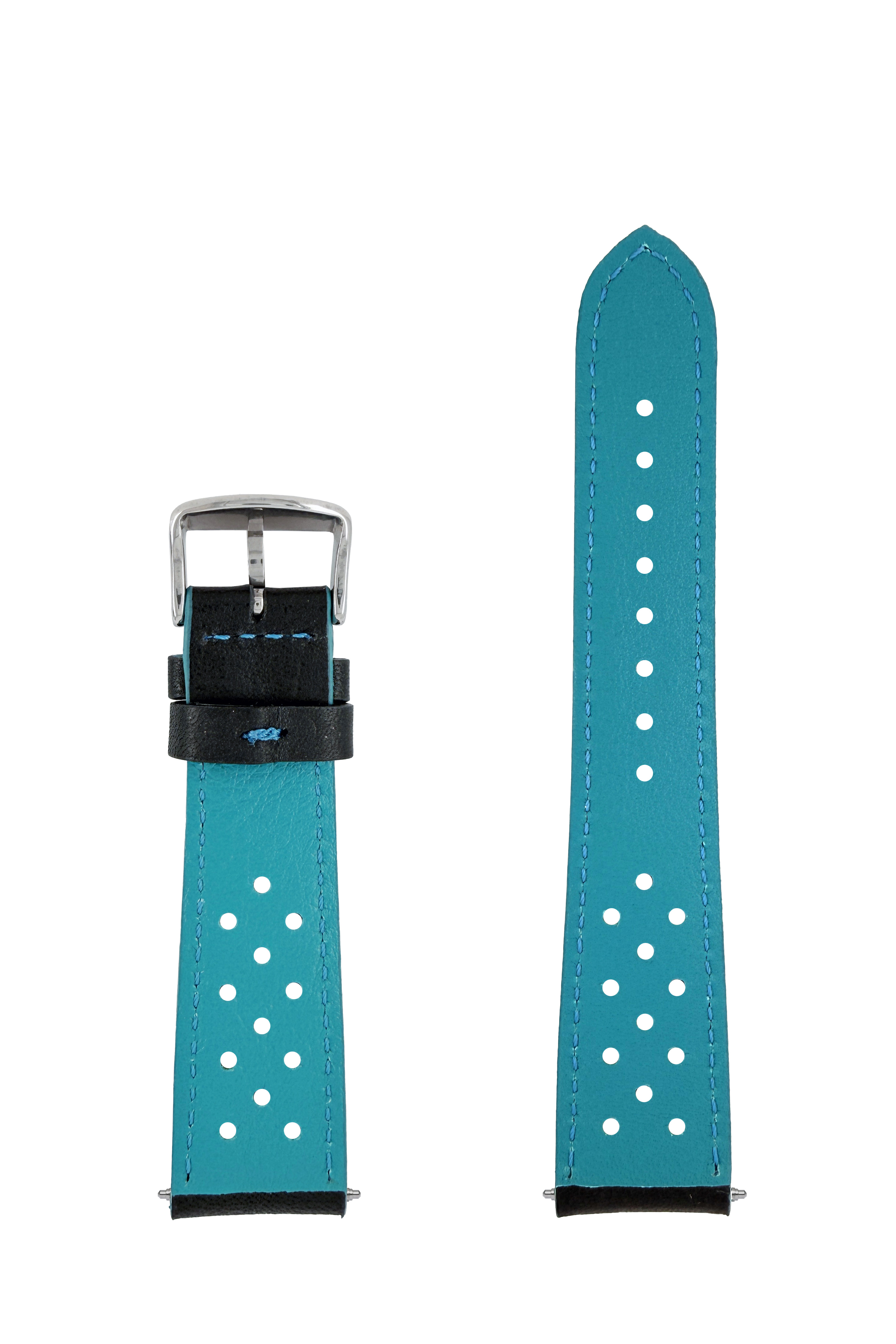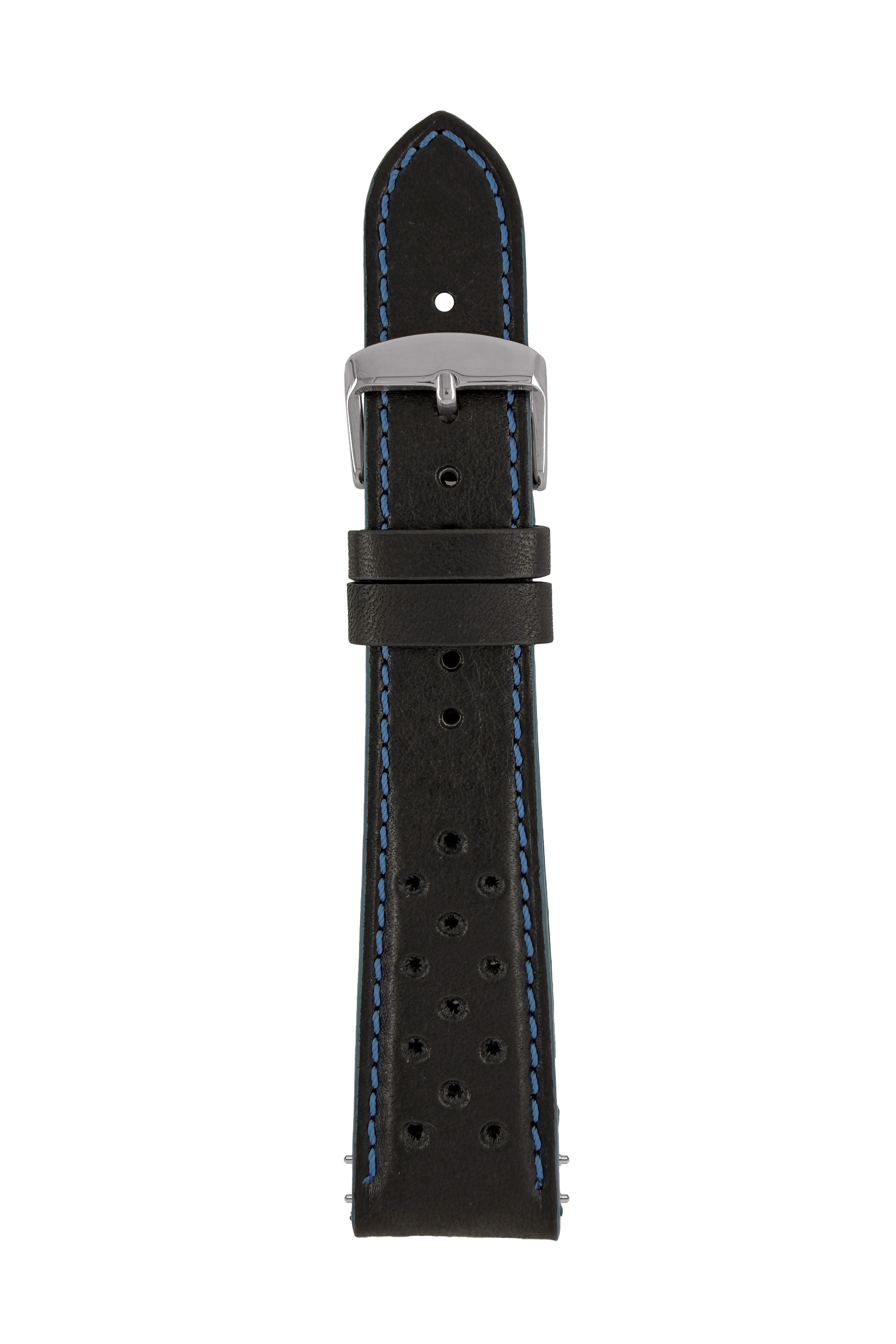 LB GM Rallye calf black, stitching blue, for ref. 2766-3, 22/18mm Rallye with holes black, stitching and backside blue, Sport buckle steel shiny