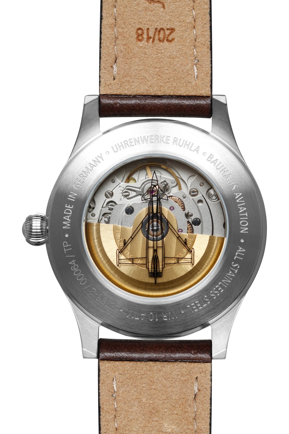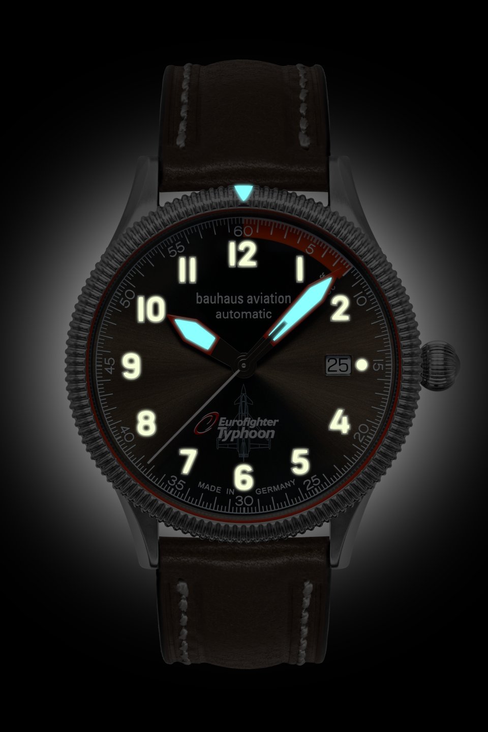 bauhaus Aviation men’s automatic watch with date and leather strap
