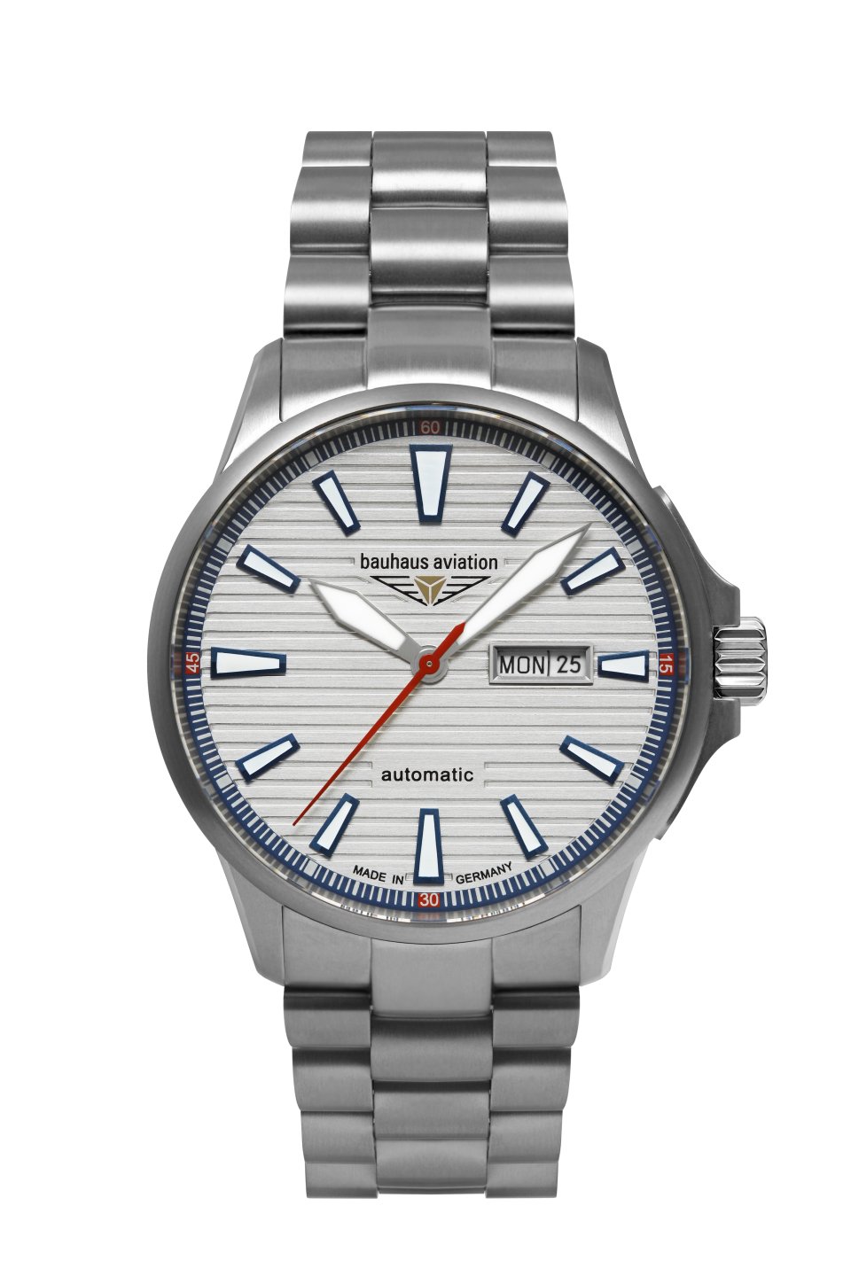 bauhaus Aviation men’s automatic watch with Day Date and titanium link strap